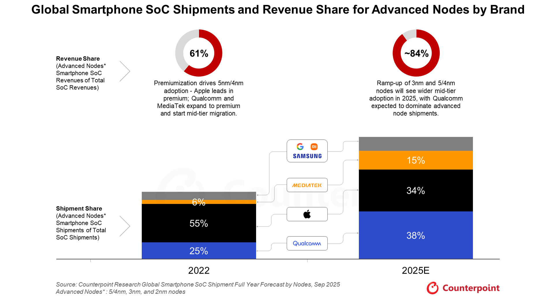 Smartphone-AP-SoC-Lieferungen erreichen 2025 einen Anteil von 51 % an fortschrittlichen Fertigungstechnologien 05.11.2025|Insights|