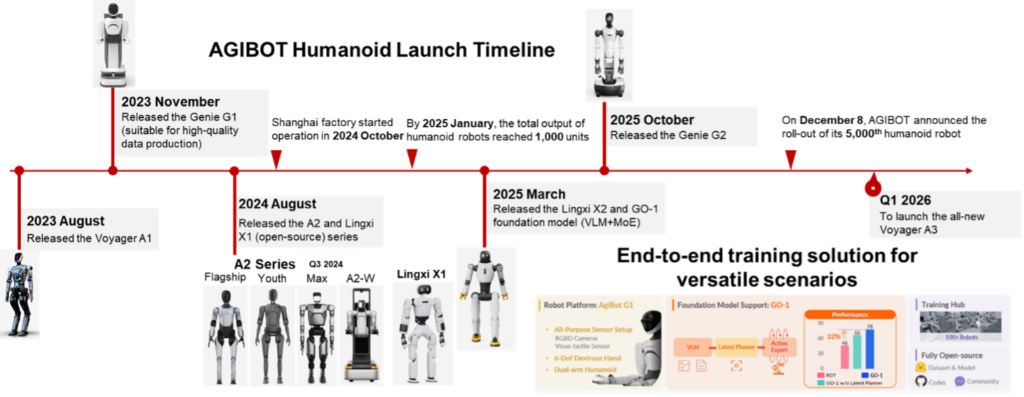 - AGIBOT erzielte 2025 über 140 Mio. US-$ Umsatz, weltweit Rang eins
