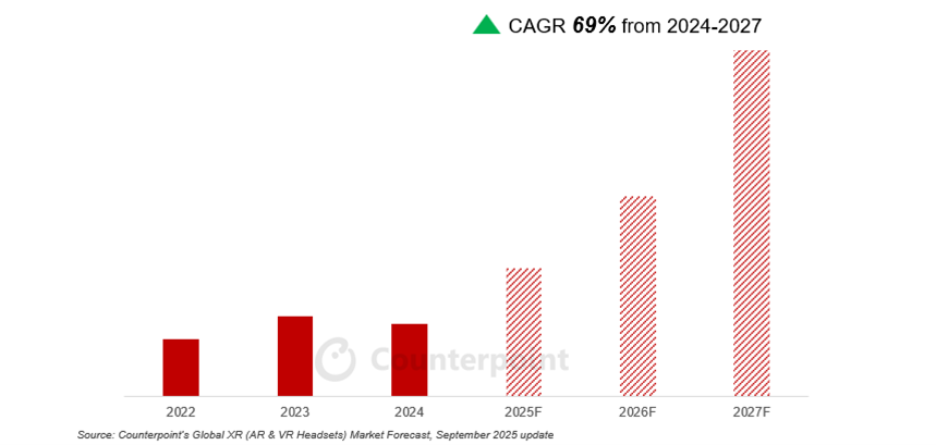 Hinweis: In diesem Bericht umfasst VR Mixed Reality (MR), während AR-Smartglasses sich auf Geräte beziehen, die mit den notwendigen Display- und optischen Komponenten ausgestattet sind, um ein optisches Durchsicht-Erlebnis (OST) zu ermöglichen. Displaylose Smartglasses, wie die Ray-Ban Meta AI Glasses, sind nicht im AR-Smartglasses-Segment enthalten, das in diesem Bericht behandelt wird. Einblicke in den Smartglasses-Markt finden Sie unter diesem Link